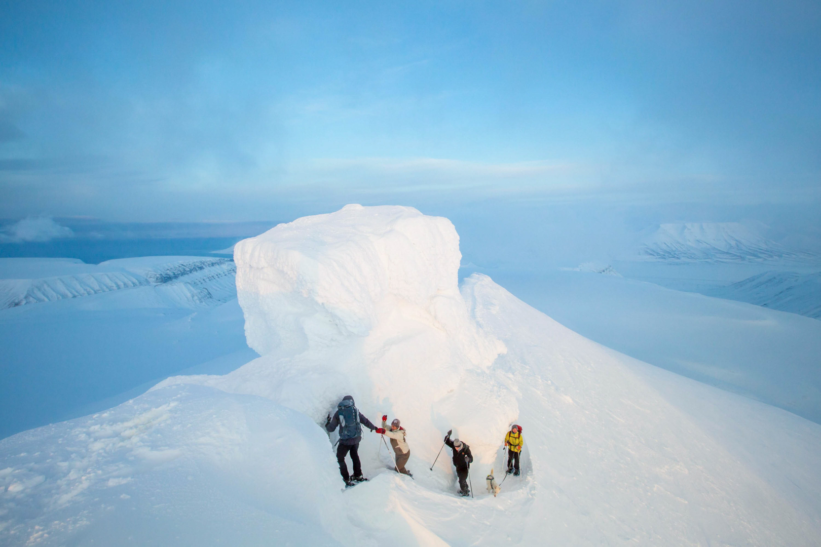 Approx. 750 m elevation. Join us to the top of the characteristic mountain Trollsteinen, and experience the deep channels under the glacier with a visit to the ice cave! This tour is a 2-in-1 combination of our most popular activities for a longer adventure in our magical nature! Trollsteinen is located 850 meters above sea level and is best known for a massive stone formation at the top - as the name suggests (The Troll Rock). It is both a hike over the moraine landscape and the glacier, and a deep-dive into the spectacular canal system underneath that can only be experienced in a natural ice cave full of astounding corridors and whimsical crystals of ice. Further up towards Trollsteinen back on the surface, the ascent to the mountain top offers a fantastic view from the ridge all the way to the Troll Rock itself. Lunch and necessary equipment for the ice cave visit is included, as well as snowshoes/hiking poles if needed. - info @ wildlife.no